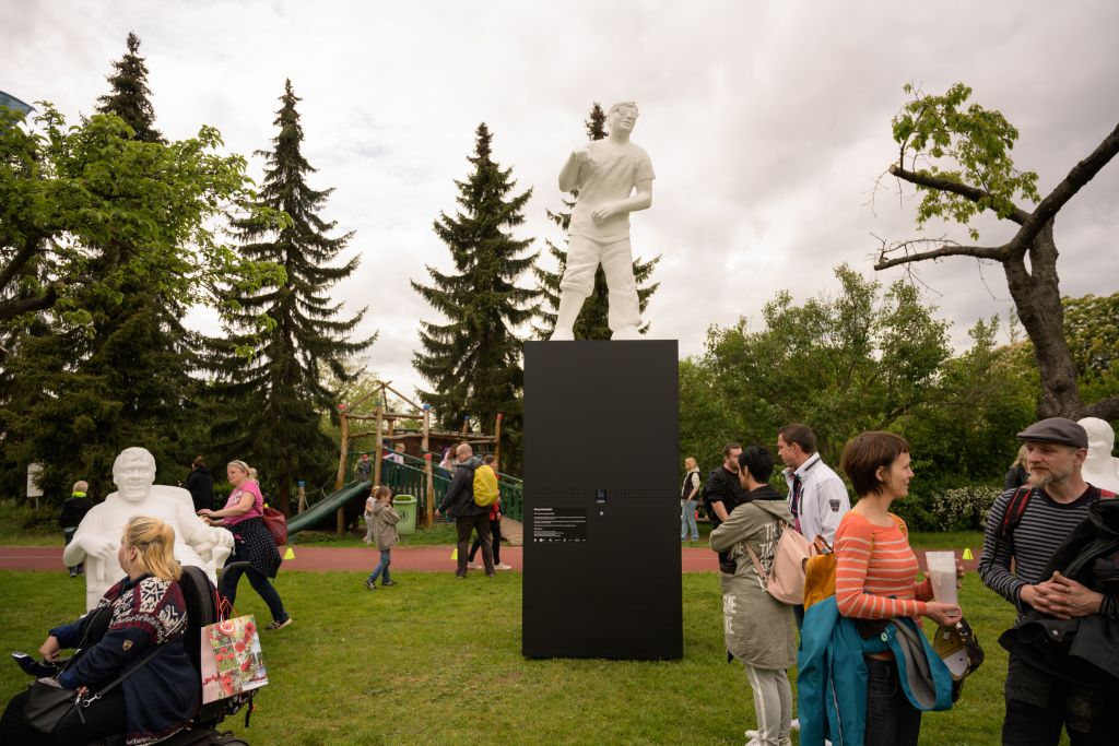 Interaktivní socha vznikla za laskavého přispění a díky ochotě jejích tvůrců – produkce Pink, autorů soch a podstavce architektonického studia Kolmo a Sochařské pohotovosti. Poděkování patří také hlavnímu partnerovi sochy, Muzeu hlavního města Prahy, a hlavnímu partnerovi podstavce, kterým je Všeobecná zdravotní pojišťovna ČR.