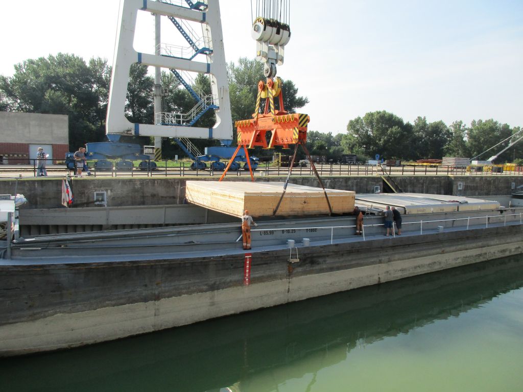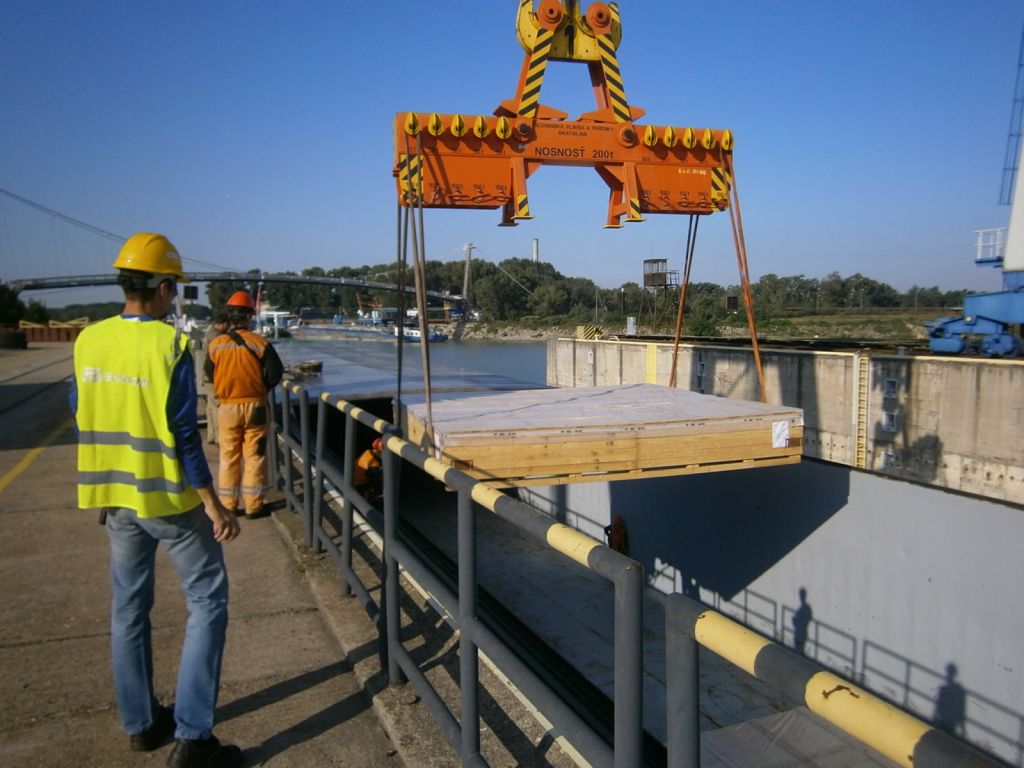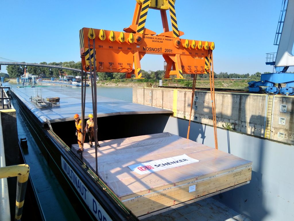 Náklad zabalený v celodřevěných přepravních bednách se tedy silnici na cestě do Bratislavy přeci jen nevyhnul – v tamějším přístavu byl přeložen do říčních lodí a vypraven do jednotlivých námořních přístavů k lodění. Po vyjednání speciálních podmínek u rejdařů putovaly díly na námořních kontejnerových lodích z Rotterdamu, Hamburku a Konstanty do finálních destinací.