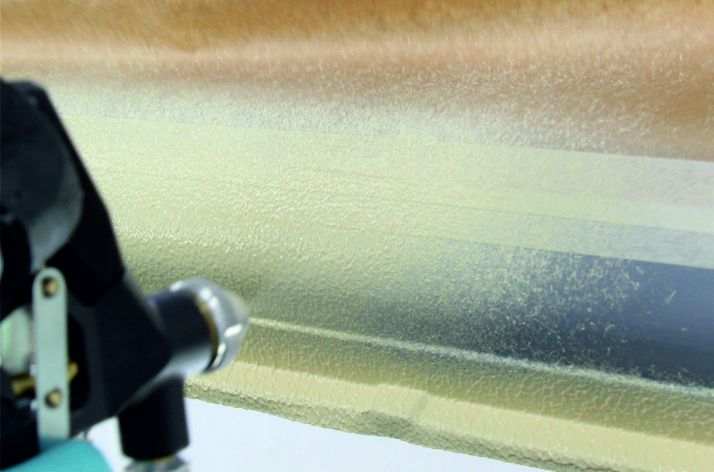 STP FLOW lze aplikovat pouze stříkací pistolí. Díky jeho konzistenci dochází při nanášení k většímu rozprostření než u tmelu STP FLEX, který společnost NOVOL představila již dříve a který lze nanášet kromě stříkací pistole také štětci a stěrkami na tmel.