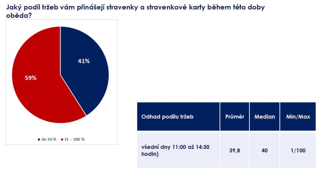 Stravenky totiž tvoří významnou část restaurací zejména v době obědů. Pro šest z deseti restaurací stravenky zajišťují více než 30 procent tržeb v době obědů. Pro pětinu restaurací je to pak dokonce přes polovinu obědových plateb. „Odtud jednoznačně pramení existenční obavy restauratérů. Pokud lidé dostanou paušál namísto stravenek, své peníze rozdělí na mnoho aktivit a jídlo z restaurací bude pouze jednou z nich,“ říká šéf Edenredu Eich.