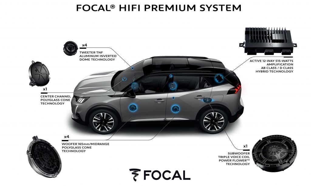 2016: vozy Peugeot 3008 a 5008 nabízejí ve světové premiéře prémiový akustický systém Focal jako součást originálního příplatkového vybavení. Know-how společnosti Focal je vloženo do systému složeného z 10 reproduktorů s nejmodernějšími technologiemi pro potěšení z čistého zvuku na palubě. Čtyři hliníkové obrácené kopulovité výškové reproduktory doplňují čtyři 165mm basové reproduktory s polyglassovou membránou a středový 85mm kanál s polyglassovou membránou pro dokonalou rovnováhu a přesnost. 20mm subwoofer Power-Flower™ s trojitou cívkou dodává dynamické nízké frekvence. Reproduktory jsou spojeny s 12kanálovým 515 W zesilovačem třídy AB/D. Základem systému Hi-Fi FOCAL Premium jsou právě tyto přesné technologické volby, které vycházejí ze 40 let technické historie a inovací značky.