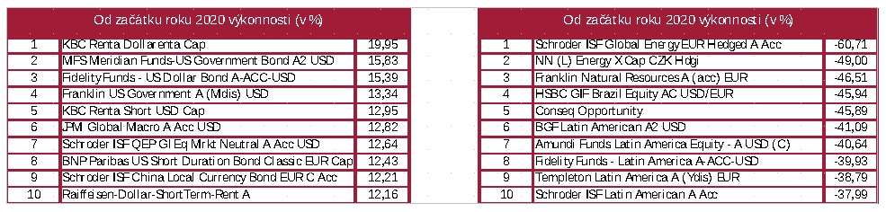 Tabulka: Deset nejvýnosnějších a deset nejméně výnosných fondů