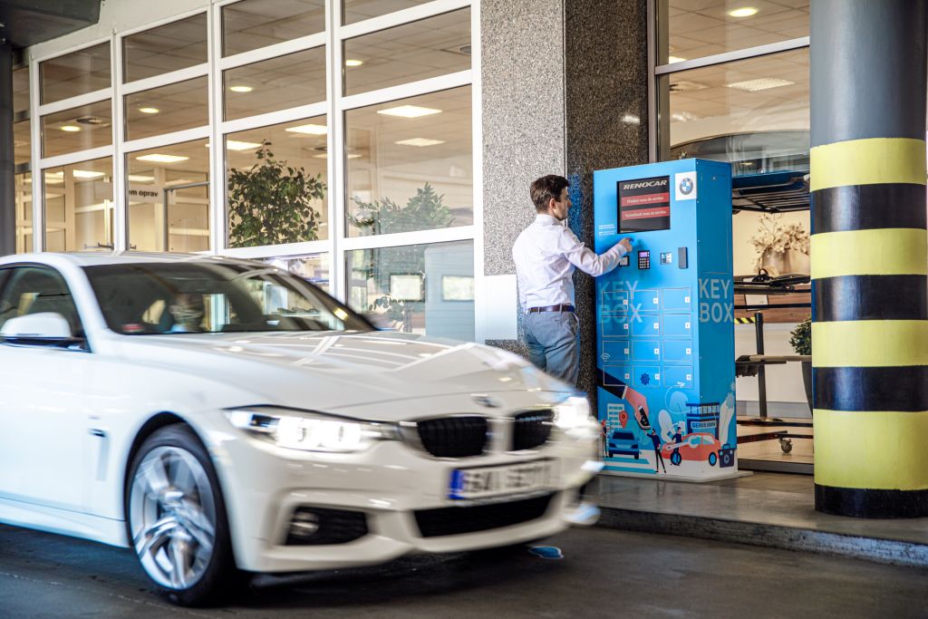 BMW Autorizovaný Dealer Renocar ve své pražské pobočce v Kongresovém centru zavedl v České republice unikátní službu KEY BOX. Kromě toho, že nevyžaduje osobní kontakt, je dostupná 24 hodin denně a 7 dní v týdnu. Klienti tak nejsou vázáni pevnou otevírací dobou.