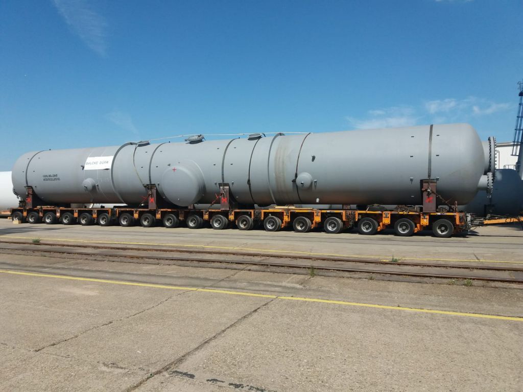 Třicet metrů dlouhý a více než stotunový separátor poveze speciální nákladní souprava s tahači o výkonu 750 koní na obou koncích. Vlastní souprava má osmnáct náprav, na každé osm kol v řadě vedle sebe. Hydraulický systém umožňuje nezávislé natočení každého kola a naklopení ložné plochy na jednu nebo druhou stranu.