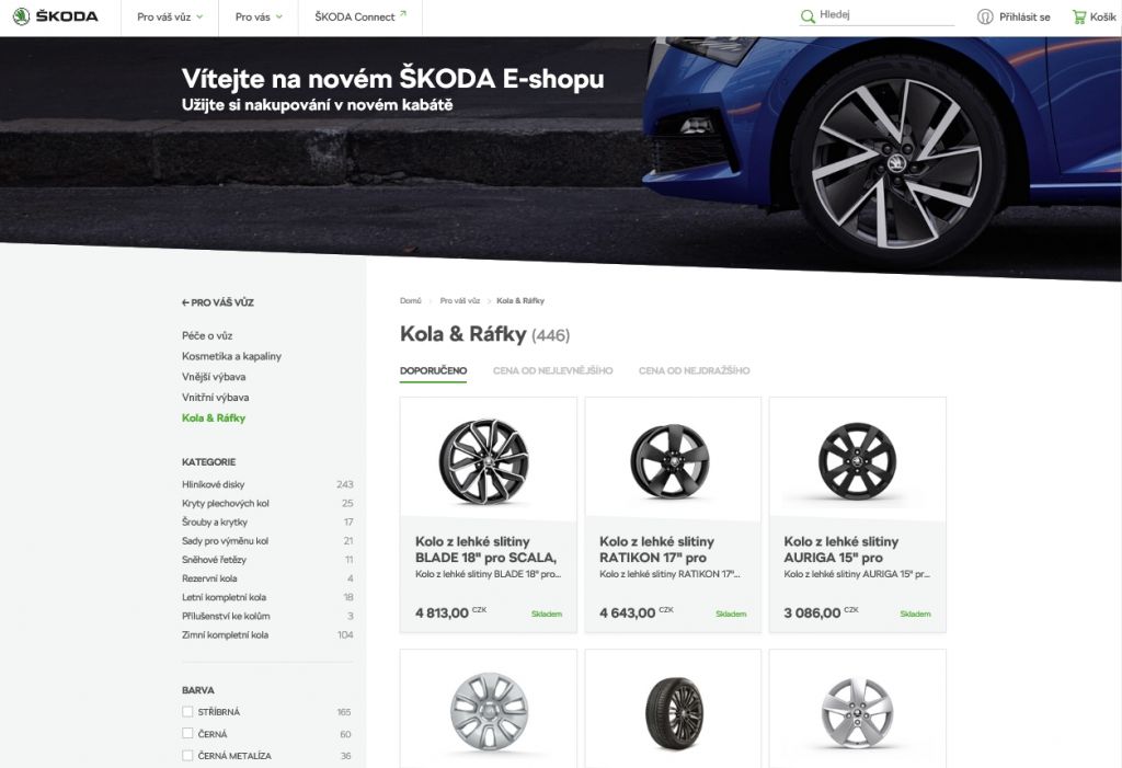 ŠKODA AUTO spustila na adrese eshop.skoda-auto.cz nový e-shop pro český trh. Spojení moderního vzhledu s vylepšenými funkcionalitami pomůže zákazníkům se v novém online prostředí snáze zorientovat. Zobrazení je optimalizované pro všechna zařízení a sortiment je nově rozčleněn do 2 hlavních kategorií, „Pro váš vůz“ a „Pro vás“. Zákazník si objednané zboží může vyzvednout buď zdarma u vybraného autorizovaného obchodníka ŠKODA, nebo si ho nechat doručit až domů.