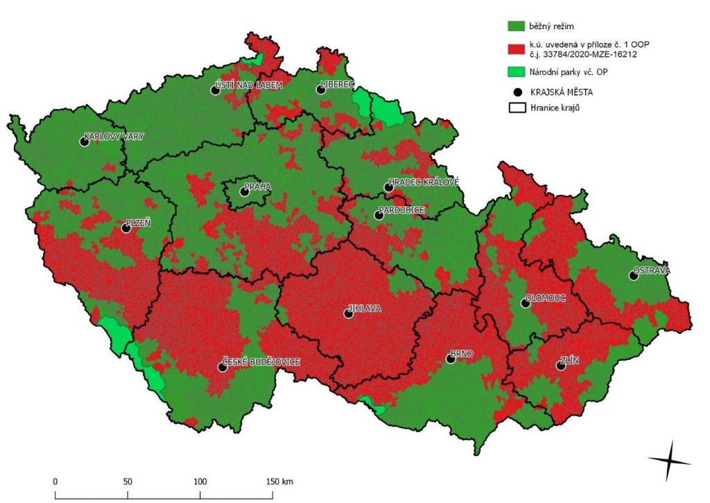 Červená zóna se rozšiřuje o přibližně 10 procent, především na území české části republiky.