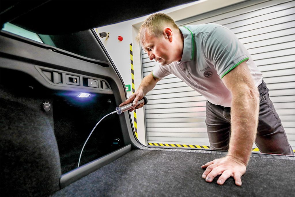 V případě zjištění vniknutí vody do vozu následuje detailní analýza, jejímž cílem je zjistit, kam všude se voda dostala (například pod koberce v interiéru), ale také odhalit, proč se tak stalo. „U předsériových vozů spolupracujeme s Technickým vývojem na konstrukčním řešení problému, závady ze sériové výroby řešíme zejména s kolegy z výroby,“ pokračuje Kořínek.