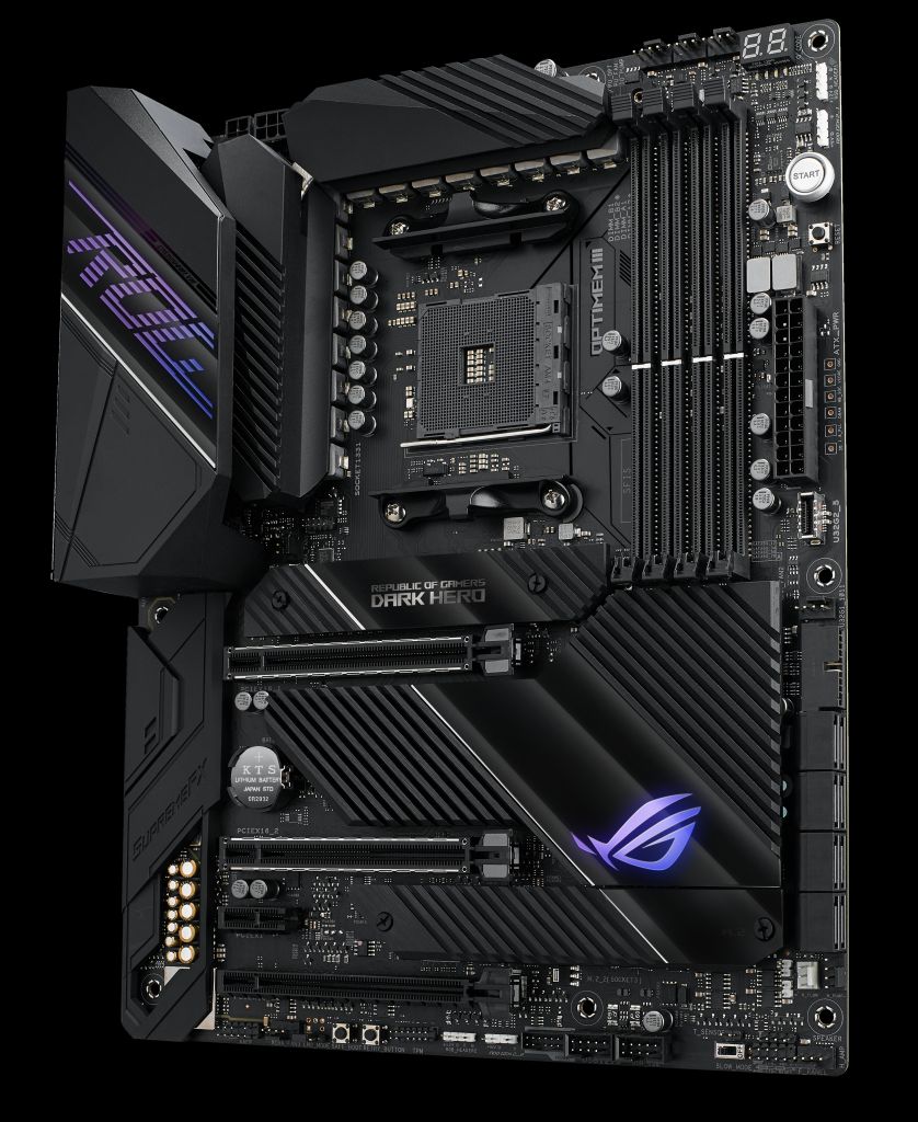 Platforma AMD X570 nabízí užitečný slot PCI Express 4.0, do nějž lze zapojit nejmodernější grafické karty či SSD disky. Čipset s velmi vysokou propustností vyžaduje účinný systém chlazení, aby nedocházelo ke kolísání výkonu. Tento problém většinou řeší kombinace pasivního chladiče a vestavěného ventilátoru, který se otáčí dle potřeby. Model ROG Crosshair VIII Dark Hero s čipsetem X570 je však první základní deskou se zcela pasivním chlazením. Rozměrný chladič vyplňuje prostor oblast od čipsetu po PCIe sloty. Dodatečný prostor usnadňuje zvládání teplotní zátěže i u plně obsazené desky. Nadšenci ji proto mohou využít jako kvalitní základ do PC sestav.