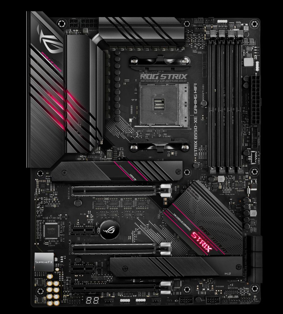 ROG Strix B550-XE Gaming je nová vlajková loď řady základních desek s chipsetem B550. Poskytuje ještě vyšší výkon prostřednictvím 16fázové napájecí kaskády TI (stejnou má deska ROG Crosshair VIII Dark Hero) s proudovou propustností 90 A pro využití nejen dnešní, ale i budoucí architektury procesorů AMD Zen 3.