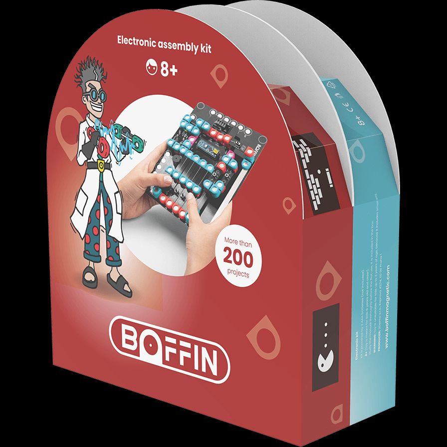 Boffin Magnetic je unikátní česká stavebnice založená na propojení magnetických prvků s elektrickou vodivou plochou. Je určena pro uživatele každého věku – hrát si a učit se je přece důležité pro každého. Všechny projekty jsou pojaté zábavnou, ale i vzdělávací formou a stavebnice je tak tou nejpříjemnější cestou k pochopení základů elektroniky. Jedná se o český výrobek pocházející kompletně z Libeňské dílny.