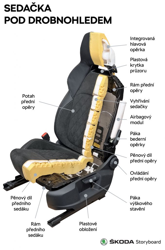 Posun ve vývoji tak samozřejmého prvku automobilu dokazuje jednoduché porovnání s minulostí. „Třeba sedadla u modelu ŠKODA 120 musela také plnit tehdejší bezpečnostní nároky, nicméně konstrukce byla v porovnání s dneškem mnohem jednodušší. Vždyť třeba neměla ani hlavové opěrky. Dnes musí sedadla splnit daleko přísnější nároky, k tomu jsou nastavitelná v mnohem více směrech, s elektrickým ovládáním, airbagy, vyhříváním, ventilací nebo třeba s masážní funkcí,“ vysvětluje Miroslav Hradil, koordinátor konstrukce sedaček ve ŠKODA AUTO.