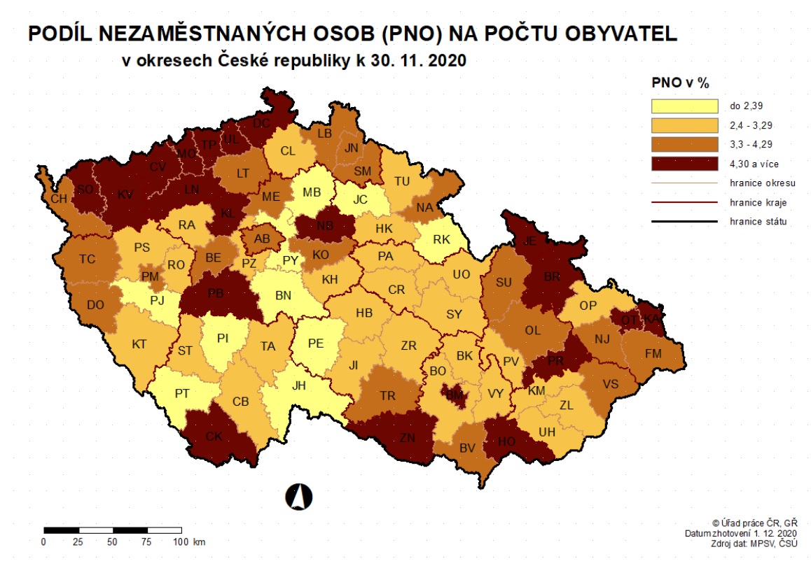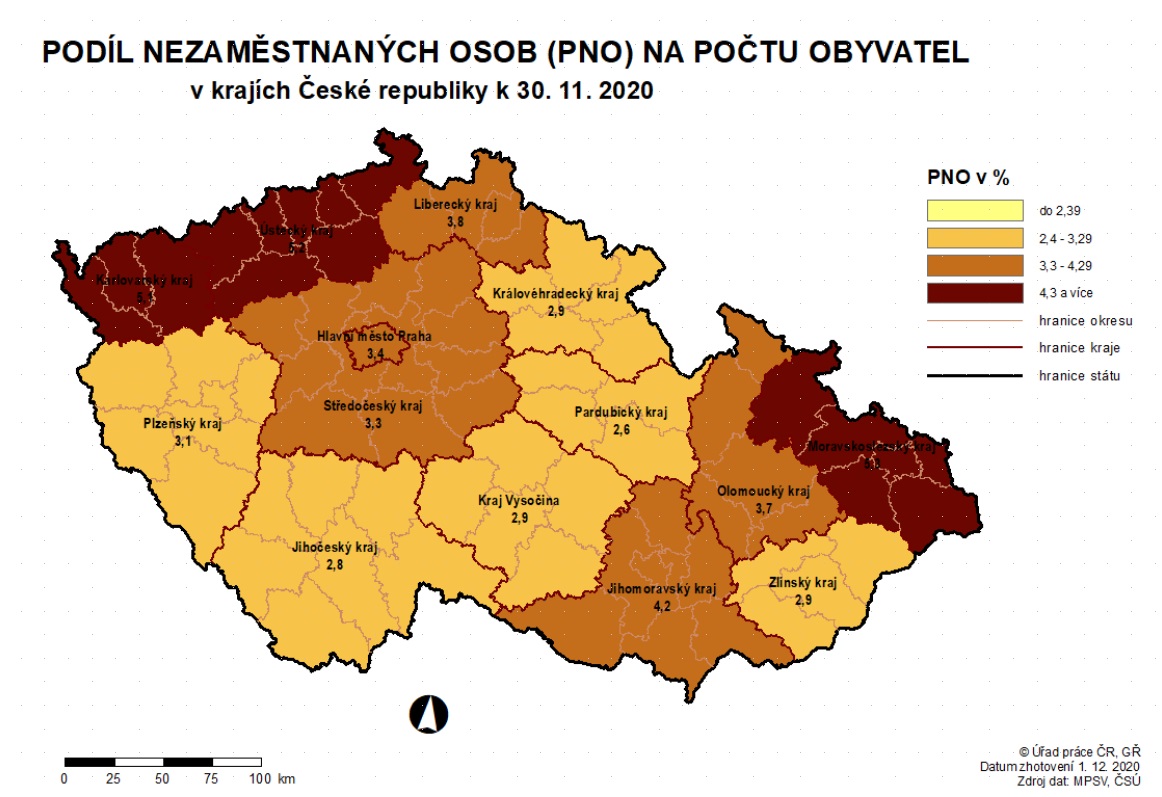 Podíl nezaměstnaných osob v ČR k 30. 11. 2020 |