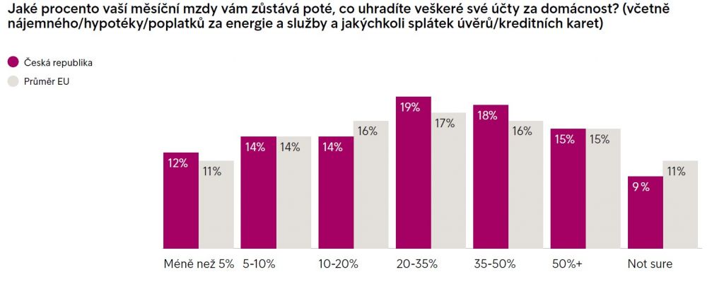 10 % českých respondentů požádalo o odklad splátek z důvodu pandemie. Je to o procento více než evropský průměr. 45 % respondentů uvedlo, že aby zlepšili svoji finanční situaci, hledají si druhé zaměstnání.