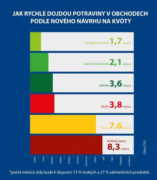 Jak T. Prouza zdůraznil, tuzemští pěstitelé jsou schopni dodávat ovoce a zeleninu na trh pouze několik měsíců v roce. Namátkou u květáku a rajčat to jsou necelé čtyři měsíce, u salátových okurek dokonce ani ne dva měsíce. Pokud po zbytek roku bude zakázáno dovážet ovoce a zeleninu ze zahraničí, zůstanou na základě návrhu hnutí ANO a SPD v obchodech prázdné regály.