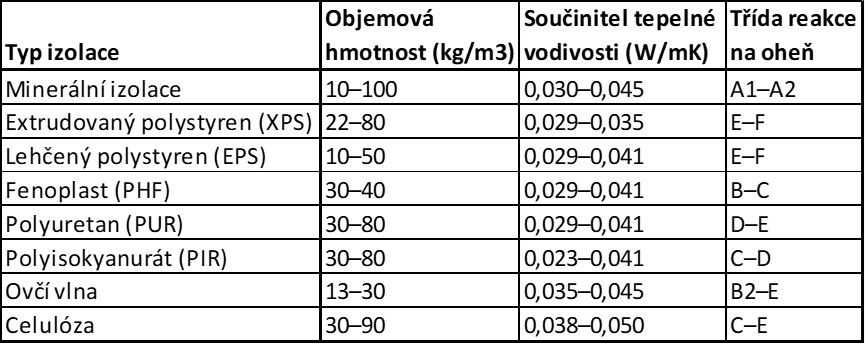 Jednotlivé izolační materiály se v reakci na oheň, tedy laicky řečeno hořlavosti, značně liší. Jak moc, to je dobře vidět v tabulce níže. Z přehledu izolačních materiálů také vyplývá, že jedině minerální izolace (čedičová či skelná; spadající do kategorie reakce na oheň A1–A2) nepřispívá k růstu požáru. Všechny ostatní izolační materiály představují v mezních případech potenciální nebezpečí ohrožení života či zdraví.