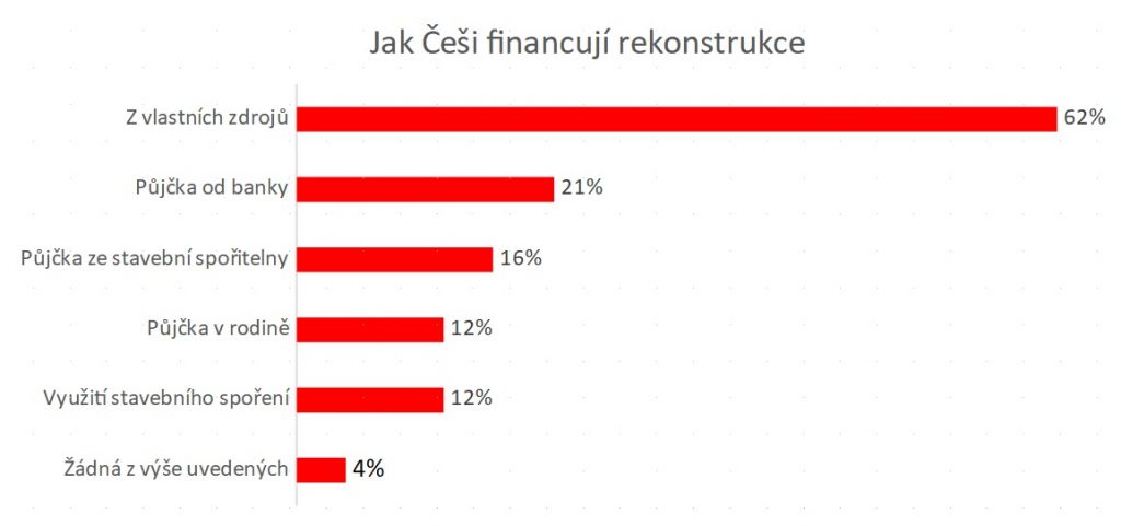 Podle průzkumu Buřinky chtějí Češi nejčastěji financovat úpravy bydlení z úspor. „Proto také volí postupné opravy místo celkové rekonstrukce. Vymění okna, pár let šetří a zateplí fasádu nebo vymění střechu. Není to ideální řešení. Při kompletní rekonstrukci domu má za několik měsíců hotovo a může si užívat nového komfortu bydlení daleko dříve. Navíc, při částečné rekonstrukci domu klient zpravidla nedokáže splnit podmínky přidělení dotace, na rozdíl od celkové rekonstrukce,“ říká Jaroslav Cvrček ze Stavební spořitelny České spořitelny.