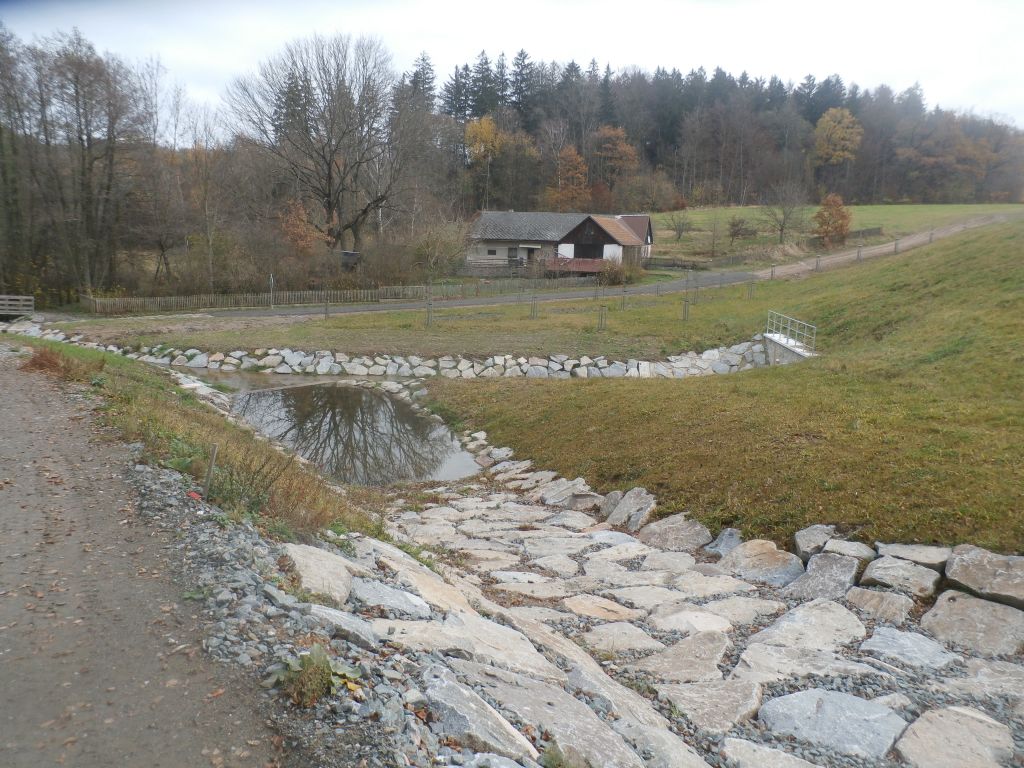 Práce začaly v březnu 2019. Vodohospodáři z Lesů ČR postavili suchou nádrž se 158metrovou zemní sypanou hrází širokou čtyři metry a vysokou 8,2 metry, která při povodni zadrží až 53 300 m³ vody. „Pokud se do nádrže dostane stoletá voda, zadrží ji a korytem potoka proteče maximálně voda desetiletá. Stavbu nakonec prověřila i loňská povodeň na přelomu června a července,“ řekl Ludvík Řičář, vodohospodářský náměstek oblastního ředitele pro východní Čechy.