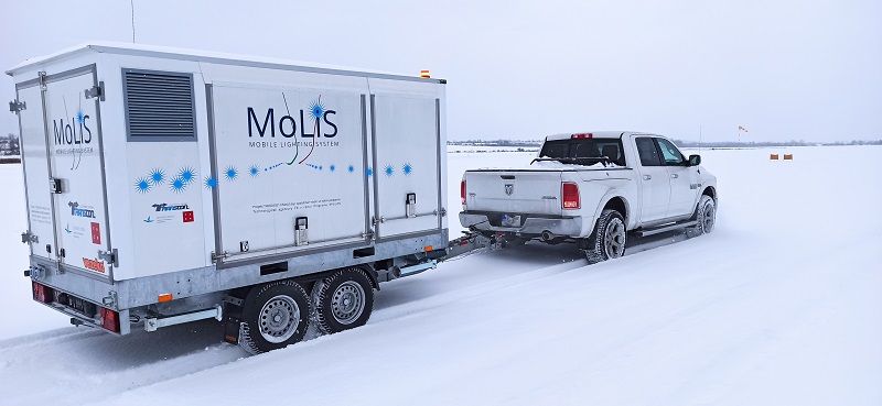 Dá se složit do vozíku, zapřáhnout za osobní auto a odvézt kamkoliv. To je jedna z výhod systému MoLiS, mobilní letištní světelné soustavy, kterou vyvinula firma TRANSCON ELECTRONIC SYSTEMS ve spolupráci se Leteckým ústavem Fakulty strojního inženýrství VUT v Brně. MoLiS by mohl na malých letištích nahradit zastaralé systémy, které na mnoha místech dosluhují. Využití ale najde i jako záložní soustava pro velká letiště, nebo v případě, že je potřeba připravit přistávací dráhu v místě, které jako letiště běžně neslouží.