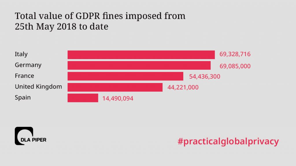 Více než dva a půl roku od vstupu GDPR v platnost bylo napříč 27 členskými státy EU nahlášeno přes 280 tisíc případů porušení ochrany osobních údajů, a to včetně Velké Británie, Norska, Islandu a Lichtenštejnska. Podle nejnovějšího průzkumu DLA Piper o porušení ochrany osobních údajů uložili regulátoři dat od zavedení GDPR pokuty ve výši 272,5 milionu eur (více než 7 miliard korun). Ty se týkaly široké škály přestupků v rámci GDPR, nejen narušení bezpečnosti osobních dat. Rovněž byly uloženy vyšší pokuty než dříve a to i přes to, že velké množství pokut bylo nakonec sníženo úspěšnými odvoláními.