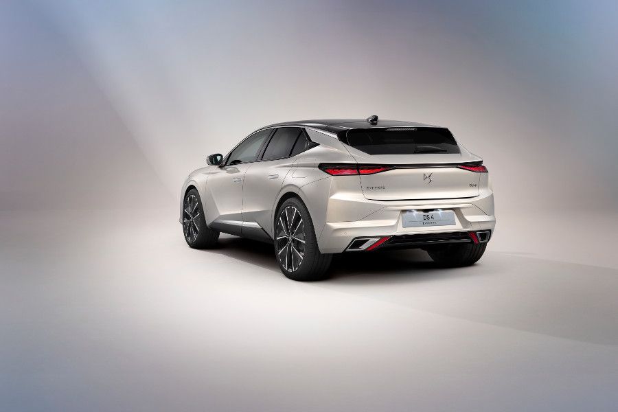 Střecha se v zadní části táhne velmi nízko podél strmě šikmého zadního okna se smaltovaným sítotiskem, jako vnějším symbolem uznávaného know-how. Silueta je jak stylová, tak velmi aerodynamická. Zadní blatníky ukrývají zřetelnou muskulaturu vytvářející na karoserii výrazné křivky a ostré hrany. Při pohledu z boku upoutá C sloupek s leskle černým povrchem a vsazeným logem DS Automobiles. Vzadu se představuje nová generace světelného podpisu s motivem postupně vystupujících laserem vypálených šupin.