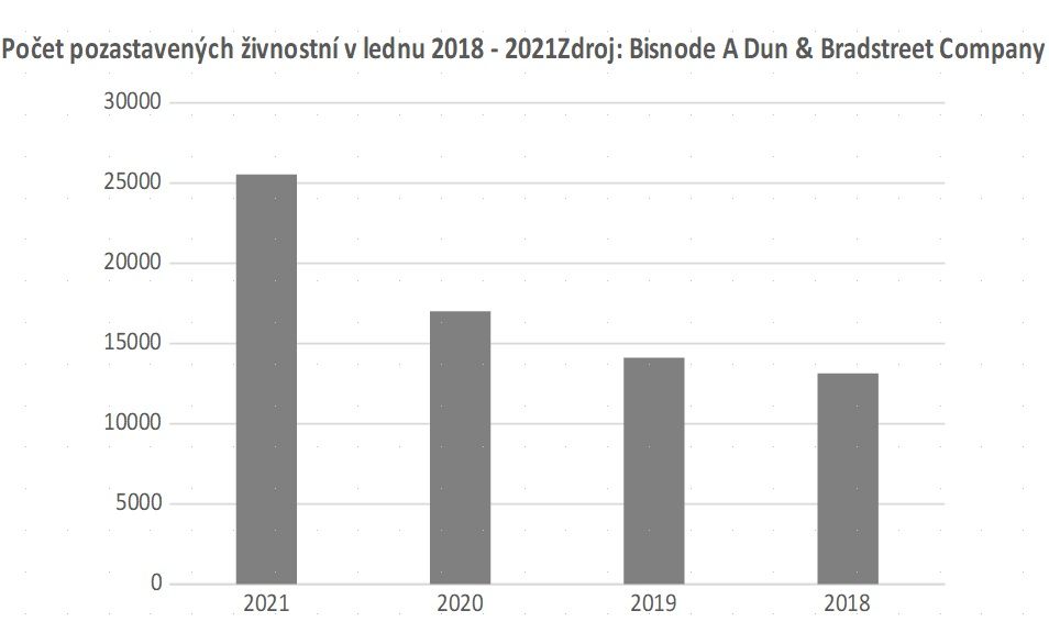 Podnikání v roce 2020 pozastavilo téměř sto tisíc živnostníků, což bylo o 40 % více než v roce 2019. „Nepříznivý trend pokračuje i letos. Podnikatelé se v čím dál větším měřítku dostávají do existenčních problémům a dochází jim síly. Důvodem je především dlouhotrvající lockdown, který zasahuje zejména segment stravování, ubytování, cestovního ruchu, maloobchodu a služeb, nicméně tvrdě jsou postiženy i navazující obory,“ komentuje situaci analytička Bisnode A Dun & Bradstreet Company.