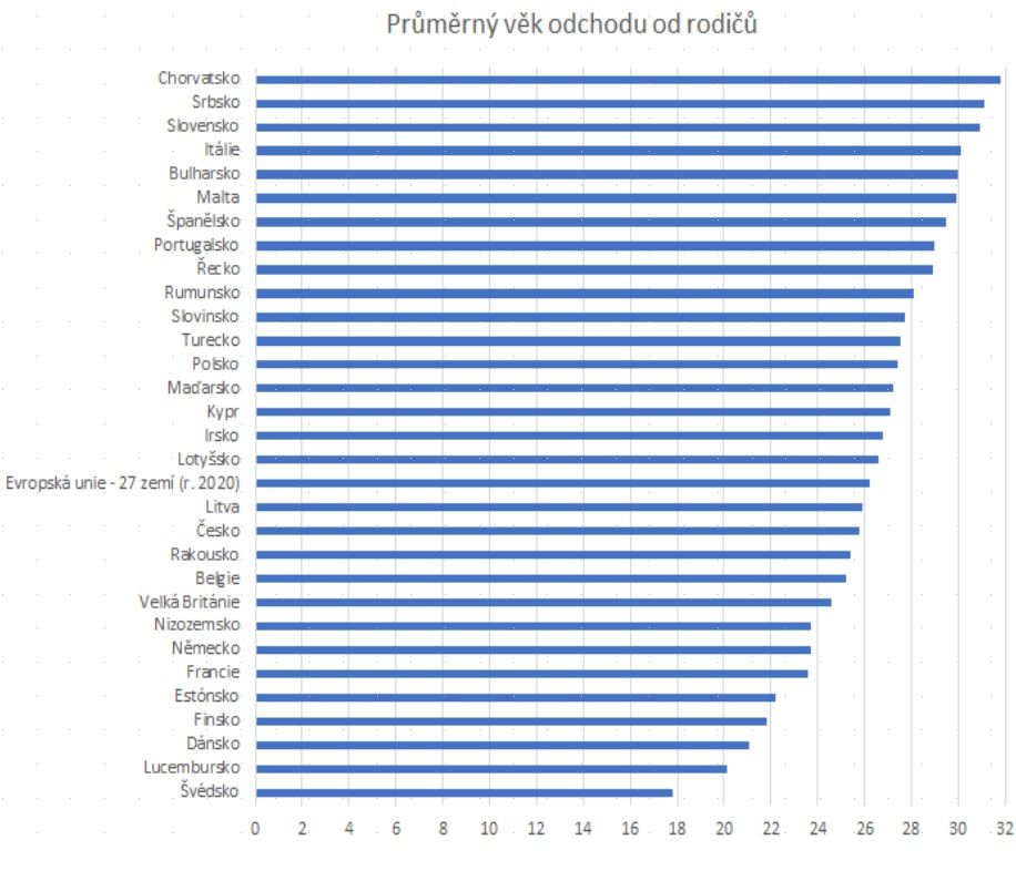 Češi mezi mamánky rozhodně nepatří. Čím dál častěji se od rodičů stěhují ještě před dovršením 30 let. Průměrný věk osamostatnění je necelých 26 let. Přeborníky v Evropě jsou Chorvaté, kteří se z mamahotelů stěhují až téměř ve 33 letech. Naopak nejsamostatnější jsou Švédové, kteří opouštějí rodinná hnízda ještě před dovršením 18 let. „Současná situace na realitním trhu mladým lidem a jejich touze po osamostatnění přeje. Ceny za pronájmy stále klesají. Významně tomu přispěla i koronavirová epidemie, kdy ceny pronájmů spadly až o dvacet procent, což v přepočtu znamená úsporu v řádu několika tisíc korun měsíčně,“ vysvětluje Jiří Šedivý, tajemník Asociace českých stavebních spořitelen.