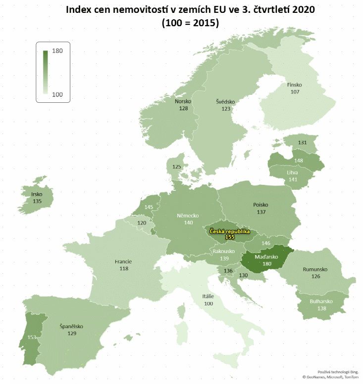 Poptávka Čechů po novém bydlení dlouhodobě převyšuje nabídku. Tu za poslední rok ještě umocnil strach z růstu inflace v příštích letech a také obavy z toho, že při stávajícím tempu růstu cen nemovitostí lidé na vlastní bydlení brzy nedosáhnou. Ceny nemovitostí přitom ve srovnání s ostatními zeměmi EU rostly v České republice za poslední rok nejrychleji (zdroj: data Eurostatu).