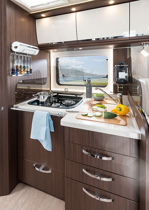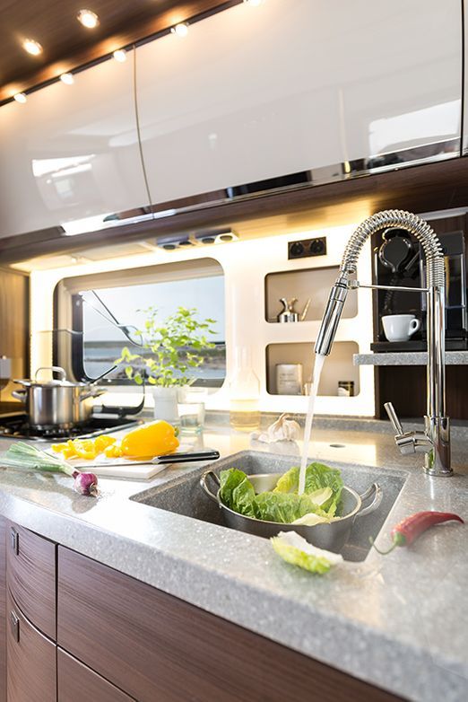 Samostatnou kapitolou je pak prostorný, designově a funkčně vymazlený interiér, kde se nezapře německá dokonalost. Dispozice vozu se liší podle modelů a velikostí, ale v žádném nechybí bohatě vybavený kuchyňský kout, ložnice s manželskou postelí a střešním panoramatickým oknem, prostorná koupelna i stůl s pohodlnými sedačkami. Samozřejmostí je také toaleta, podlahové vytápění, centrální vysavač, mobilní, ekologické a nezávislé zdroje energie SFC Energy, a další vychytávky, které znáte spíše z domova či luxusních hotelů.