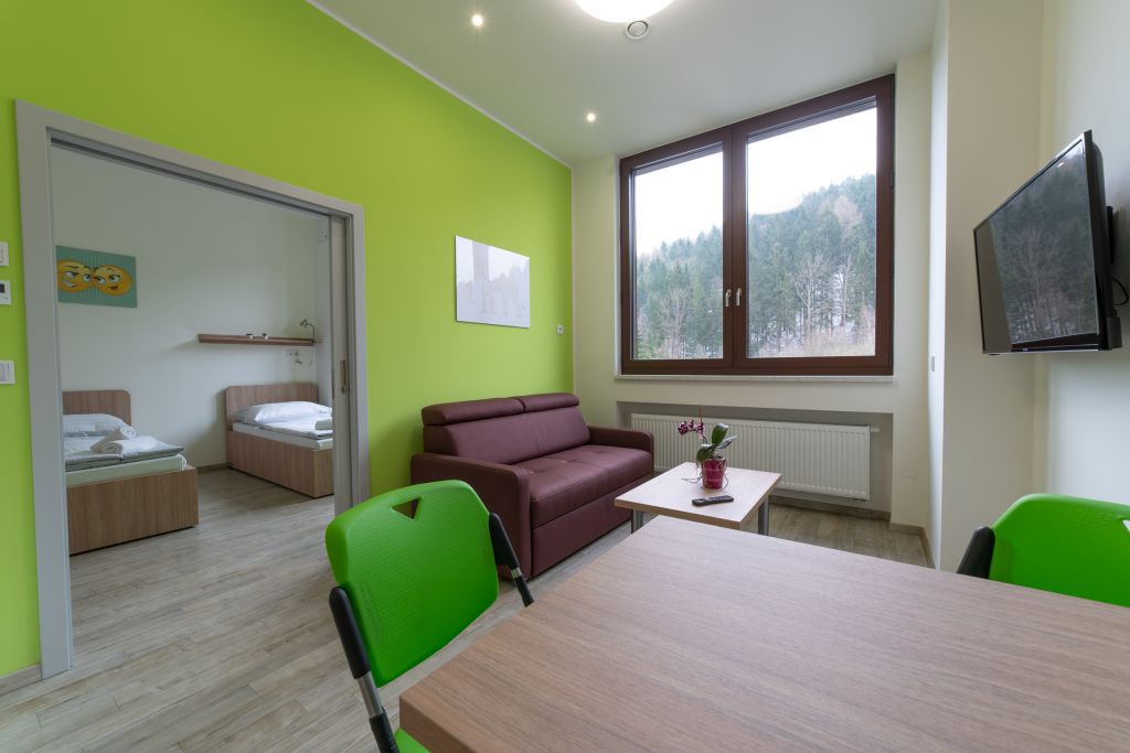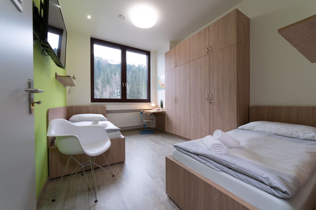 Druhou částí pokračovala rekonstrukce v uvolněných prostorách druhého poschodí, kde se léčebna rozrostla o nadstandardně zařízené pokoje apartmánového typu. „Z původních pokojů, které neměly sociální zařízení, jsme udělali pokoje s vlastní kuchyňkou, obývacím pokojem, ložnicí, koupelnou, televizí, internetem, jako je to běžné už všude ve světě. Při stavbě jsme využili veškeré moderní technologie týkající se klimatizací či úspory energií,“ přiblížil změny Martin Voženílek. Najdete tu ale i standardní pokoje, rehabilitační ordinaci pro elektroléčbu, společenskou místnost či hernu pro děti. Na obou zrekonstruovaných patrech je nyní k dispozici 40 plnohodnotných lůžek s možností přistýlek.