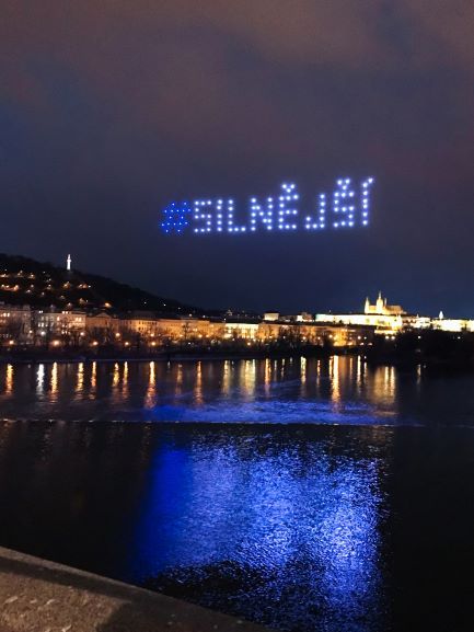 V historickém centru Prahy proběhla 6. dubna 2021 ve večerních hodinách první dronová světelná show v České republice. Stovka speciálních dronů přivezených ze zahraničí nejprve vzlétla z Dětského ostrova na Vltavě, aby se následně nad městem zformovala do zářících národních symbolů - státní vlajku, lipový list, dvouocasého lva a obrysy hranice ČR v barvách trikolóry. Nakonec drony na nebi vykreslily hashtag kampaně #silnější.