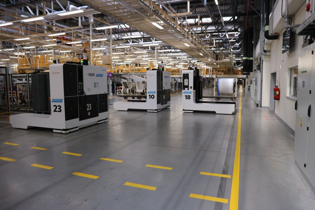 Pozornost mimo jiné upoutají autonomní přepravníky LGV (Laser Guided Vehicle), které převážejí materiály mezi jednotlivými procesy prakticky bez zásahu operátora. Mají plně elektrický pohon, a pokud se blíží vybití jejich akumulátoru, samy se dojedou nabít.