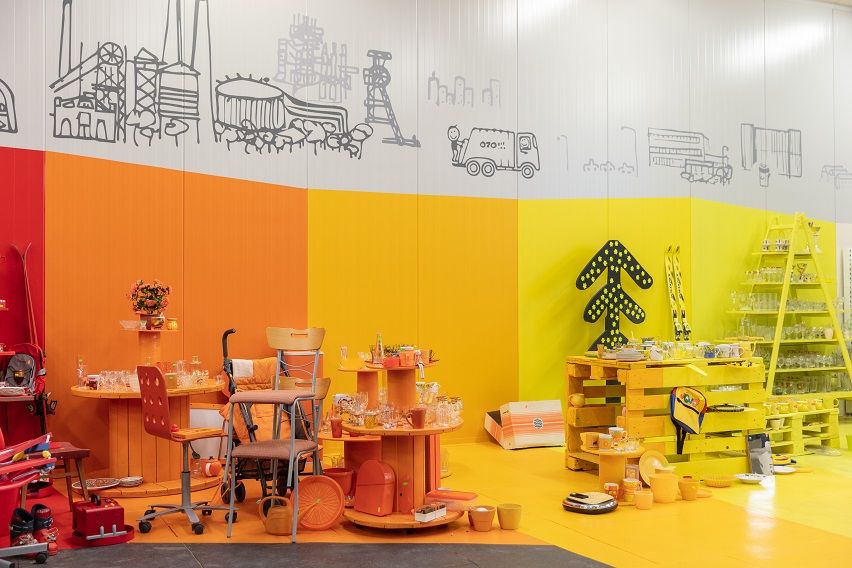 Designér halu rozčlenil do barevných zón, do nichž jsou nabízené předměty umisťovány podle své barvy. Věci, kterých by si možná při formě vystavení „á la vetešnictví“ či tmavý a zaprášený bazar z 90. let minulého století nikdo nevšiml, se rázem staly lákavějšími a celý prostor se díky pestrým barvám rozzářil. „Je to jakási výstava, protože kdybychom barvy nezorganizovali, tak by z toho byl takový bazarový binec. Vypadalo by to stejně jako v každé zastavárně,” popisuje svůj koncept. Barvy, s nimiž dovedně pracuje i ve firmě UAX!, jednoduše zorganizoval. „Dali jsme je do barevného kruhu. Do jednotlivých barevných kójí se dávají předměty stejných barev. To byl hlavní záměr, řekli jsme si, držme se těch barev. Od vykřičených barev až po dřevěnou,” říká Leskovjan.