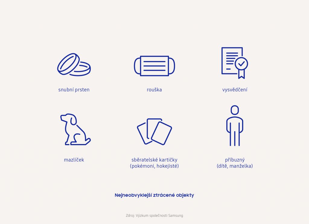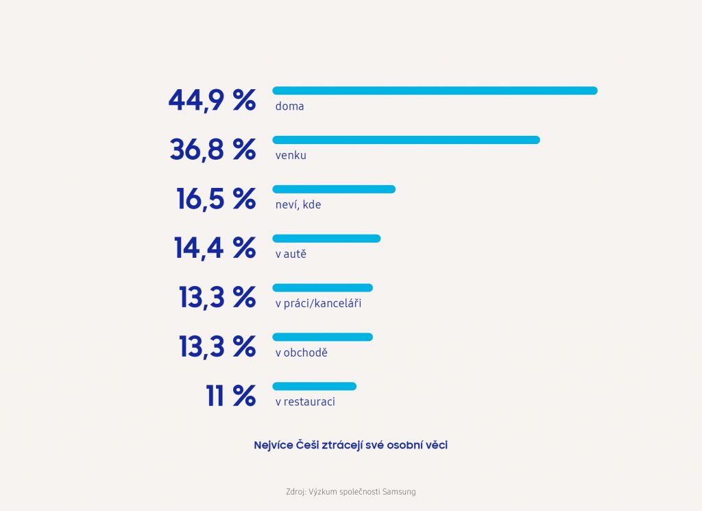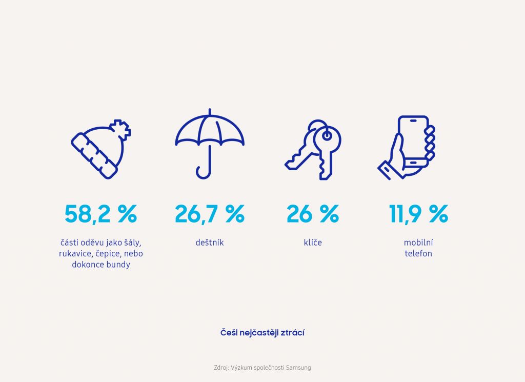 Nejčastěji Češi ztrácejí části oděvu, jako jsou šály, rukavice, čepice, nebo dokonce bundy (58,2 %). Na druhém místě se umístily deštník (26,7 %) a klíče (26 %) následované telefonem (11,9 %) a peněženkou (9,5 %). Češi často ztrácejí také brýle nebo sluchátka, ale třeba i důležité dokumenty. „Ztráta těchto předmětů znamená nejen finanční újmu, ale mnohdy i časovou, obzvlášť jedná-li se o ztrátu peněženky s doklady,“ komentuje průzkum Tomáš Balík, ředitel mobilní divize českého a slovenského Samsungu. „V některých případech lidi netrápí ani čas či peníze, ale emocionální vazba ke ztracenému objektu, jako v případě ztracených domácích mazlíčků.“