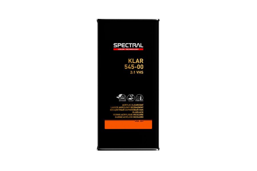 Nový ekologický akrylový bezbarvý lak SPECTRAL KLAR 545-00 schne při 40 stupních Celsia pouhých 15 minut. Kratší čas vypalování znamená nižší emise CO2 a nižší účty za elektřinu nebo palivo potřebné k vytápění. Nový lak splňuje všechny bezpečnostní požadavky pro lakování elektrických a hybridních vozidel bez vyndávání baterií.