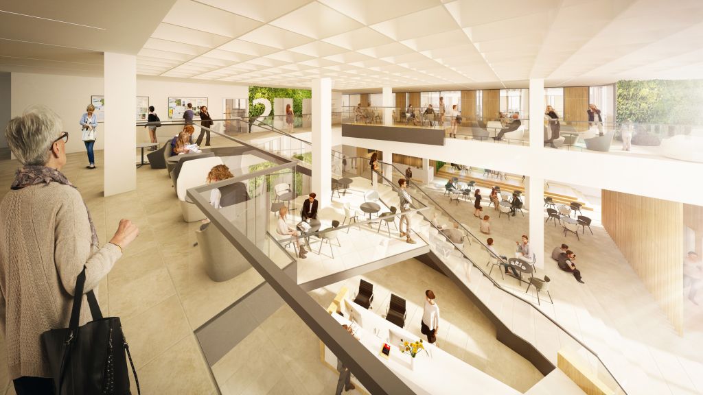Služby veřejnosti zajistí ve vstupní hale kromě dětského koutku i kavárna, menší obchody a další poskytovatelé služeb. Při vyřizování úředních záležitostí se tak místní budou moci zastavit například u notáře, v lékárně či v papírnictví. Veřejný prostor před budovou osázený zelení je ideálním místem pro setkávání sousedů, příjemné posezení a konání menších akcí, například trhů, slavností, koncertů nebo různých kulturních představení.