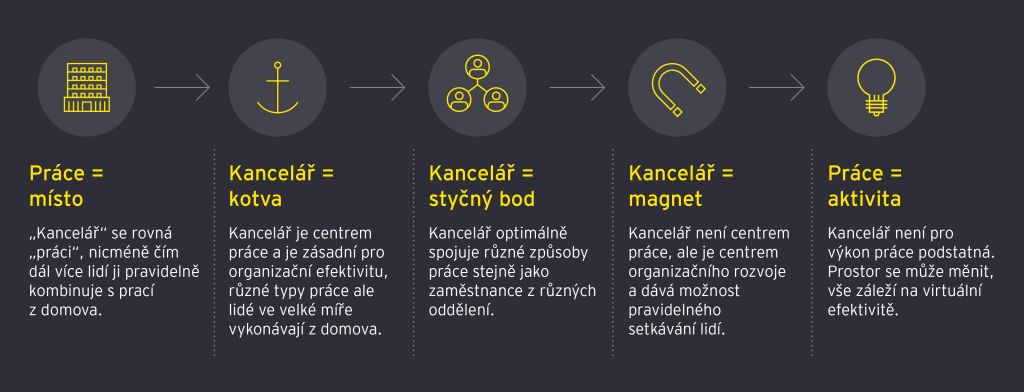 Z průzkumu společnosti EY vyplývá, že s hybridní formou většina počítá. 72 % zaměstnavatelů totiž plánuje zredukovat kancelářské prostory a zbylé primárně využívat ve chvílích, kdy zaměstnanci potřebují spolupracovat ve skupině anebo se setkat s klientem. 84 % zaměstnavatelů pak počítá s tím, že budou pracovat s technologiemi a daty tak, aby byly prostory i energie využívány efektivně, a hlavně aby byli jejich zaměstnanci se zvoleným přístupem – ať už bude jakýkoliv – spokojení.
