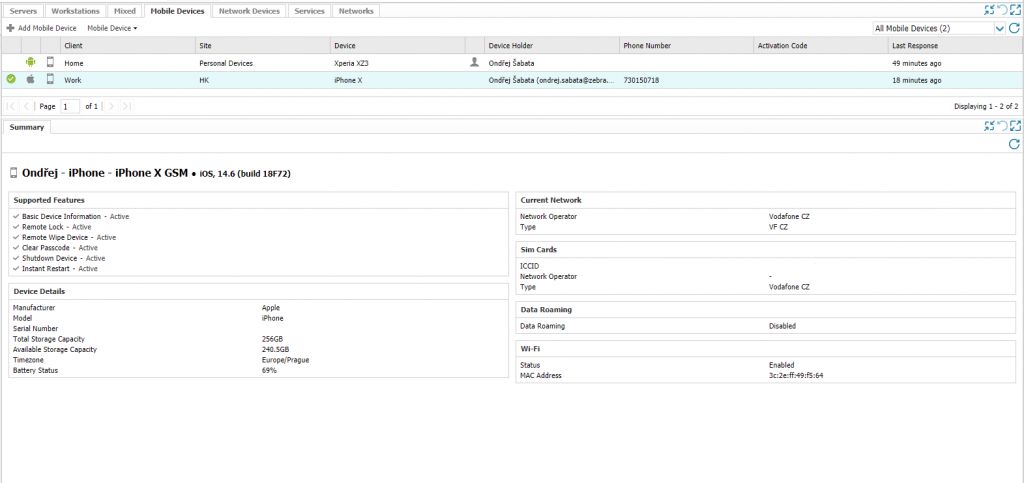 Klíčové funkce MSP řešení k eliminaci těchto rizik jsou schopnost zamknout mobilní zařízení na dálku, vymazat jeho obsah a smazat hesla z centrální konzole řešení pro vzdálenou správu. Řešení N-able RMM díky kombinaci správy osobních zařízení, cloudového antiviru, ochrany koncových bodů a vzdáleného přístupu umožňuje správu kompletního portfolia mobilních zařízení včetně automatizované údržby.
