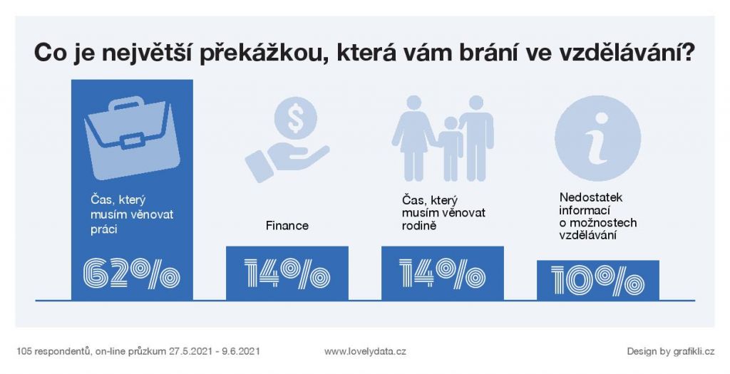 Aktuální pandemie výrazně omezila nejen přímé kontakty, ale omezuje i cestování za hranice. Nespočet lidí v současné době řeší, jak nově vzniklý čas efektivně využít. Co třeba si zdokonalit znalosti ve svém oboru nebo rozšířit obzory v oboru úplně jiném? Vzdělávat se dnes můžete pohodlně i prostřednictvím on-line kurzů prakticky odkudkoliv. Podle aktuálního průzkumu LovelyData, až 62 % dotazovaných brání v dalším vzdělávání právě čas, který musí věnovat své práci nebo jiným povinnostem.