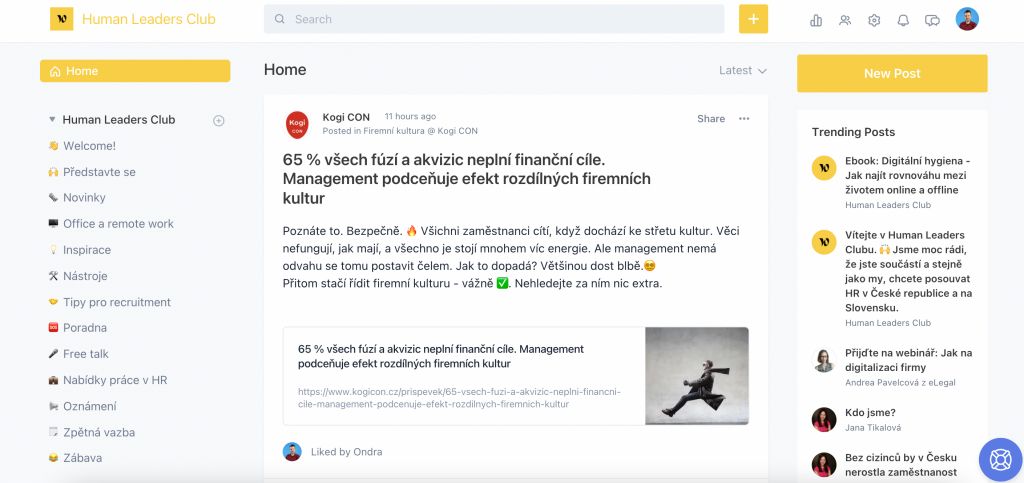 Human Leaders Club poběží na platformě Circle, která umožňuje každému členovi tvořit vlastní obsah a zároveň v něm i vyhledávat. Nová síť propojí až čtyři sta profesionálů z oboru, kteří o aktuálních trendech budou moct debatovat veřejně i přímo mezi sebou v soukromých zprávách. Platforma také umožní zveřejňovat pracovní nabídky v HR odvětví, které se tak efektivně dostanou k vhodným kandidátům.
