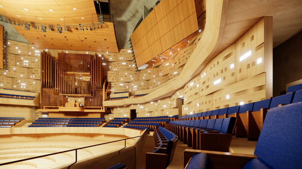 „Intenzivně pokračujeme v jednotlivých krocích příprav, tak abychom veřejnosti nabídli kulturní zázemí na světové úrovni. Po studii, kterou jsme před časem představovali, byla zpracována a projednána dokumentace na úrovni územního rozhodnutí. Výsledkem je ověření realizovatelnosti projektu. V těchto dnech projektanti finalizují dokumentaci pro společné povolení stavby, které již reflektuje výsledky desítek průzkumů i požadavky dotčených subjektů. Zemní práce by mohly být započaty již v příštím roce. Součástí příprav je i akustické posouzení sálu, proto pokračuje též výroba akustického modelu koncertní síně v měřítku jedna ku deseti pro ověření akustických vlastností budoucího díla,“ detailně přiblížila aktuální stav projektu Zuzana Bajgarová, náměstkyně primátora.