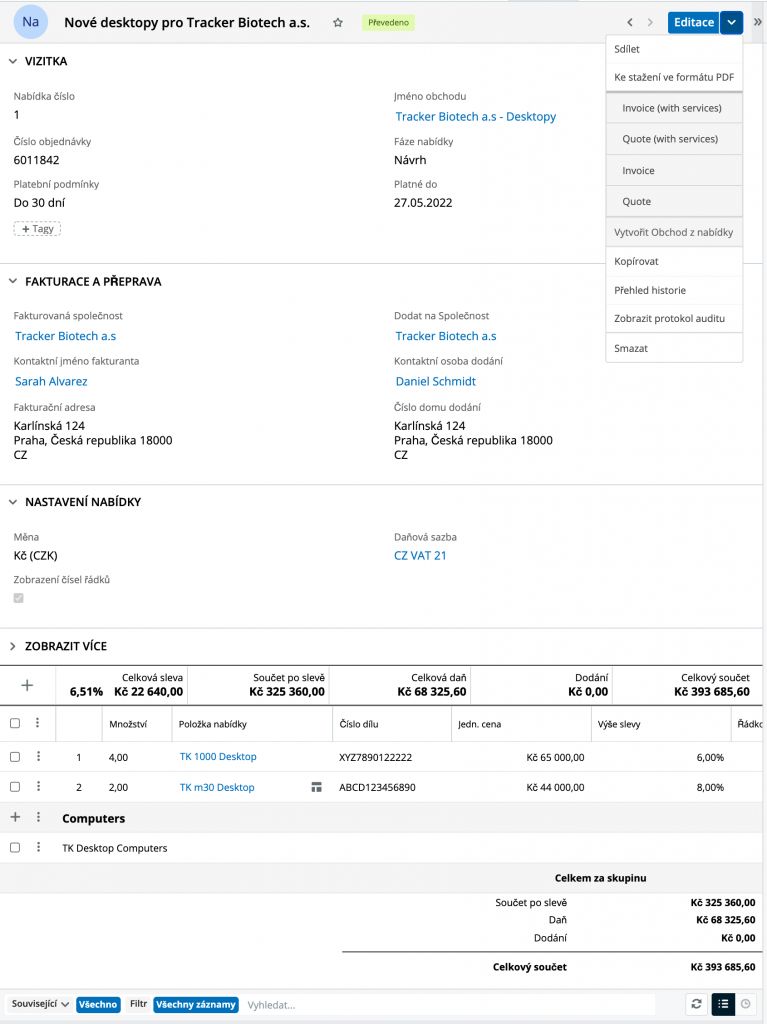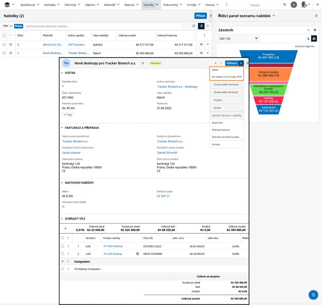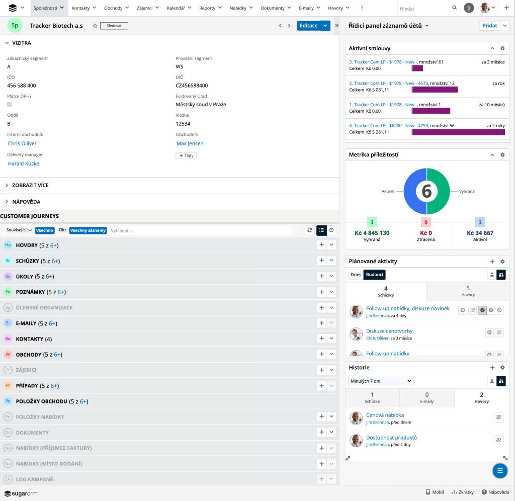 Znamená to, že obchodníci mají na ploše k dispozici primárně data o stávajících či potenciálních klientech, kteří je kontaktovali například pomocí formuláře na firemních internetových stránkách, management zase vidí souhrnné reporty a přehledy a účetní oddělení může snadno pracovat s podklady pro fakturaci, které do systému obchodníci zadávají. Navíc je možné jej integrovat i s dalšími vnitropodnikovými systémy, což je důležité pro bezproblémový chod firmy.