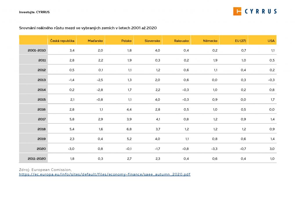 V uplynulých deseti letech byl pro českou ekonomiku charakteristický poměrně rychlý růst mezd. Za poslední dekádu vzrostly nominální mzdy v Česku o necelých 59 %, což znamená nárůst o 14 159 Kč. Ke zvýšení výdělků přispíval hlavně celkový růst nejen české, ale i globální ekonomiky, který se projevil na vyšší poptávce po pracovnících. Na českém trhu práce došlo k výraznému poklesu míry nezaměstnanosti při současném nárůstu míry zaměstnaného obyvatelstva, což vyvolalo napětí a vyústilo v takto masivní růst mezd.
