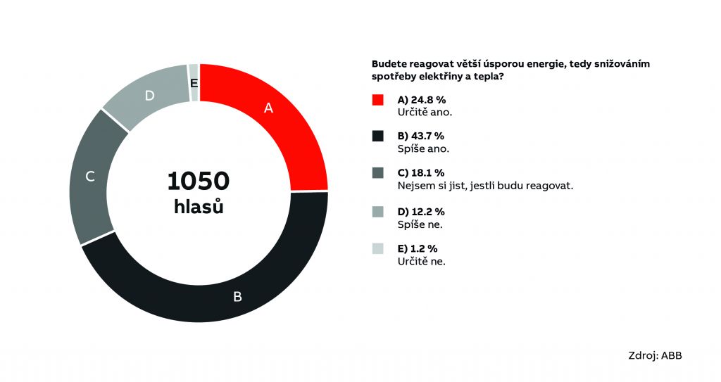 Čtvrtina bude „určitě reagovat“ úsporou spotřeby elektřiny a tepla a dalších 44 % lidí je bude zvažovat („spíše reagovat“ úsporami).