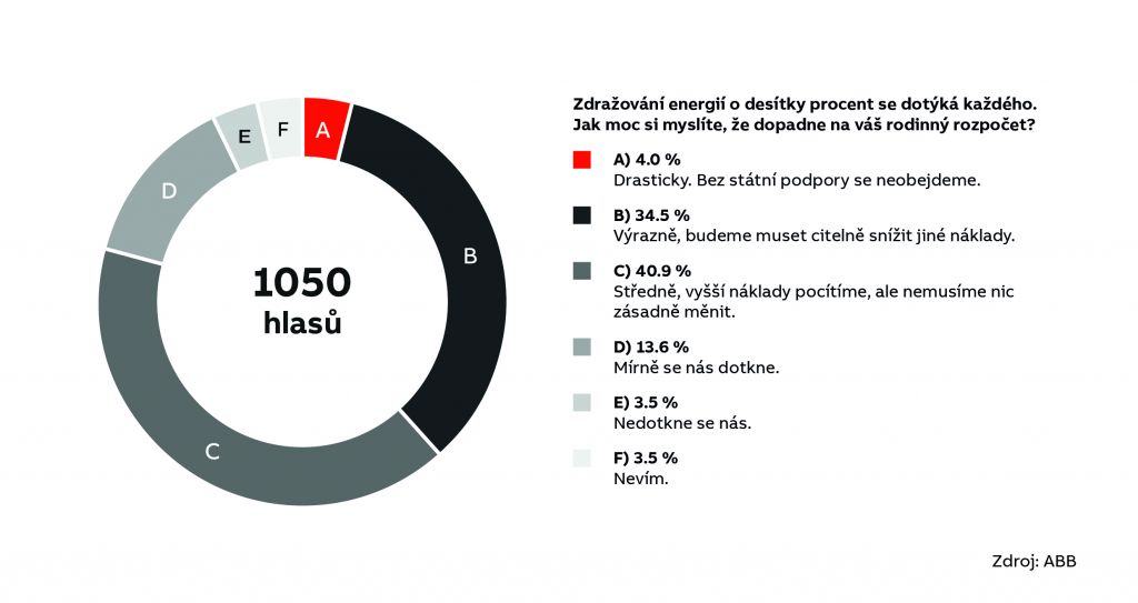 „Zatímco 22% obyvatel se domnívá, že růst cen energií je jen přechodný, tak více než dvojnásobek si naopak myslí, že jde o dlouhodobý jev. Ať už se však bude tržní cena vyvíjet jakkoli, veřejnost se na přechodu k čisté energetice bude podílet, a to minimálně šetrnějším chováním,“ komentoval výsledky průzkumu Vladimír Janypka, ředitel ABB Elektrotechnika, a dodal: „Dobrou zprávou je, že významná část obyvatel zvažuje investice do dlouhodobých řešení, kterými jsou nízkoenergetické spotřebiče, chytrá domácnost a vlastní obnovitelné zdroje.“