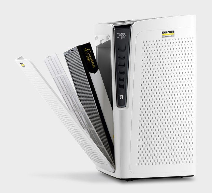 Variantou je víceúčelový filtr, který nabízí velmi široké spektrum účinnosti, čímž pokrývá veškeré požadavky. Nebo lze zvolit jeden ze čtyř filtrů, které byly speciálně vyvinuty pro cílenou eliminaci bakterií, pachů, alergenů nebo těkavých organických sloučenin. Pro průběžnou kontrolu vzduchu v místnosti a řízení automatického režimu je v čističce integrován laserový senzor. Kvalita vzduchu se zobrazuje pomocí barevného podsvícení, zatímco aktuální obsah jemného prachu ve vzduchu a zbývající životnost filtru lze kdykoli zobrazit na displeji.