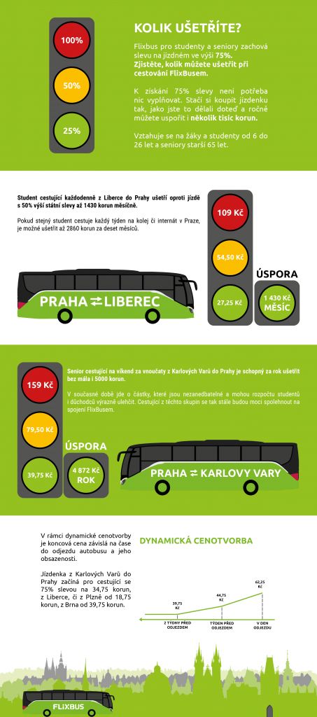Senior cestující na víkend za vnoučaty z Karlových Varů do Prahy je schopný za rok ušetřit bezmála 5000 korun. V současné době jde o částky, které jsou nezanedbatelné a mohou rozpočtu studentů i důchodců výrazně ulehčit. Cestující z těchto skupin se tak stále budou moci spolehnout na spojení FlixBusem.