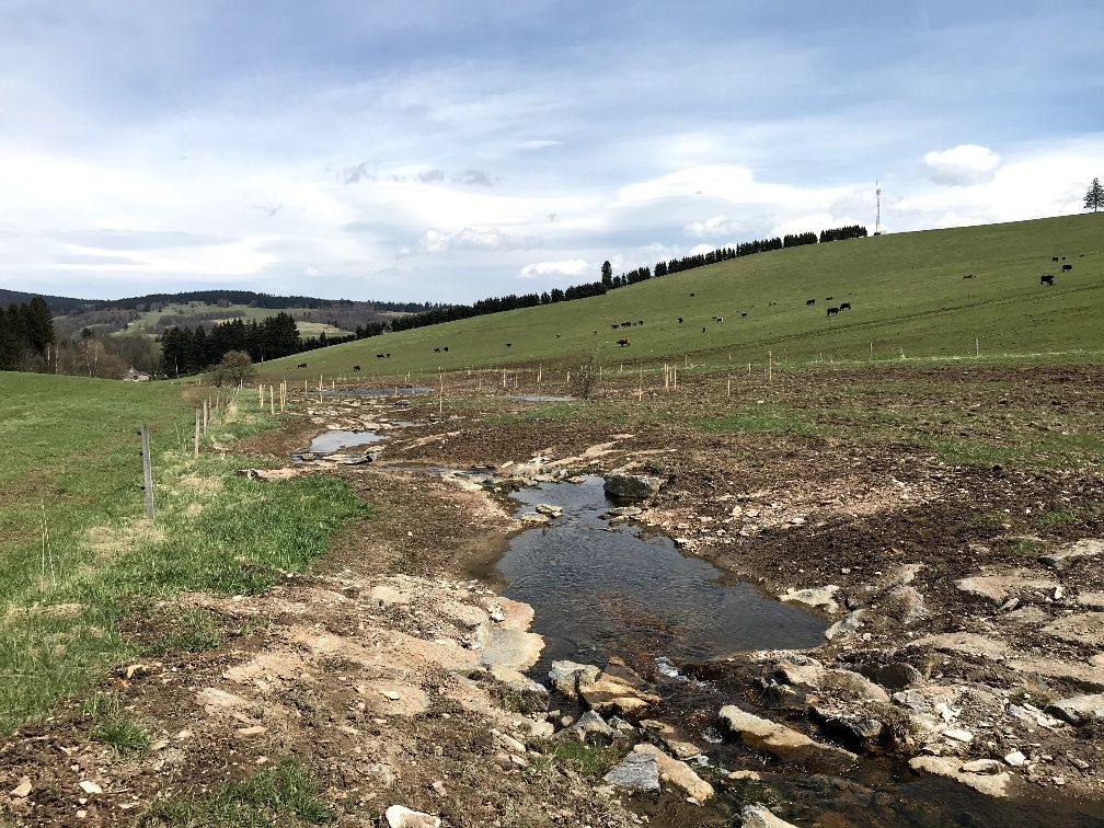 Více než kilometrový úsek přítoku Bartošovického potoka proměnily úpravy, díky nimž nově vodu zadržuje koryto meandrující krajinou, kdysi uměle napřímené. Desítky balvanitých kamenných skluzů a rybích úkrytů i jedenáct tůní tvoří příhodné prostředí pro živočichy vázané na vodu. Došlo i na vegetační břehové úpravy, takže dnes koryto lemuje 250 nových stromů a keřů.
