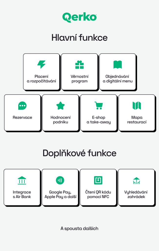 Nově spouští funkci rezervací, se kterou hosté budou mít vždy v podniku své místo jisté. V profilu podniku stačí přes tlačítko Rezervace vybrat datum a čas. Po schválení rezervace podnikem přijde uživatelům potvrzující notifikace a e-mail. Rezervace je další vychytávkou, kterou Qerko svým uživatelům nabízí a ještě více vylepšuje zážitek v restauračních zařízeních. Novinka doplňuje ostatní funkce aplikace, například mapu, vyhledávání zahrádek nebo věrnostní program, ve kterém mohou partnerské podniky svým návštěvníkům za platby Qerkem dávat odměny.