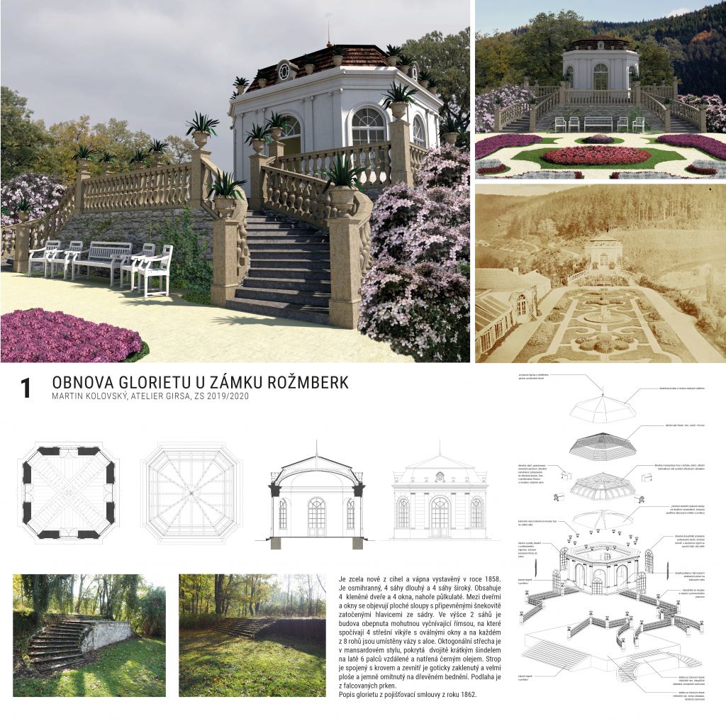 2. cena: Martin Kolovský (č. 1) ateliér prof. Václava Girsy, Obnova glorietu u zámku v Rožmberku nad Vltavou