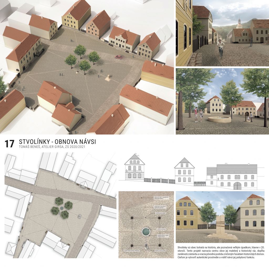 1. cena: Tomáš Beneš (č. 17) ateliér prof. Václava Girsy, Obnova návsi ve Stvolínkách